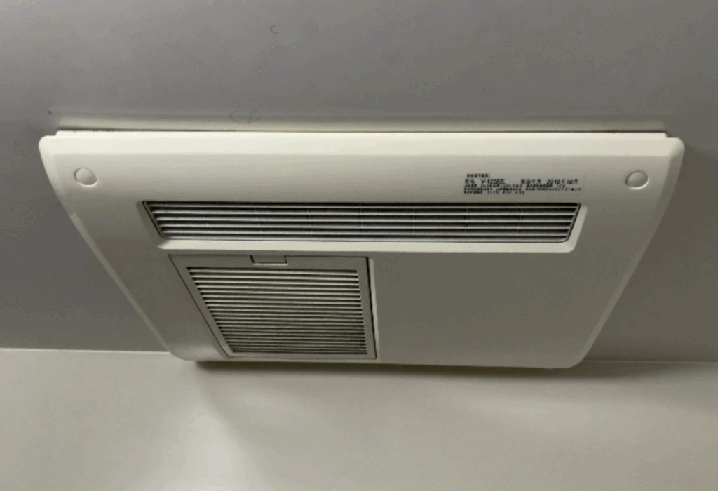 浴室天井に設置されているV-122BZL。13年以上使用しているため、吸込口周辺に汚れが蓄積し、運転時の異音も目立つようになっていました。お客様から「乾燥に時間がかかるようになった」「暖房を使うと焦げ臭いにおいがする」とのご相談を受け、交換工事を実施することになりました。