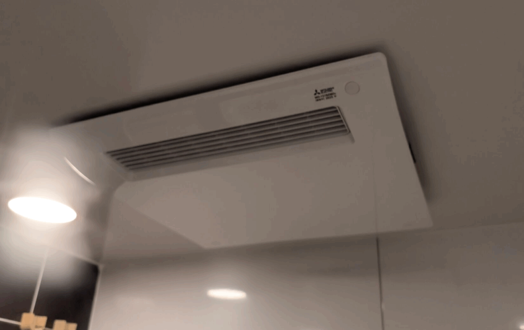 WD-121BZMD5への交換が完了しました。新品のため化粧パネルも美しく、運転音も静かになりました。動作確認を行い、暖房・乾燥・換気のすべての機能が正常に作動することを確認して工事完了です。