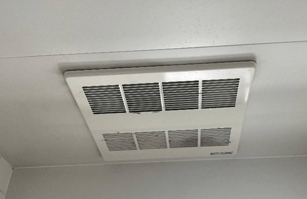 築11年の住宅で使用されていたV-130BZ5-Tです。グリル部分に経年劣化による変色が見られ、運転時の異音も大きくなっていました。3部屋同時換気タイプのため、トイレ・洗面所・廊下の換気を一台で担当していましたが、風量の低下により十分な換気ができなくなっていました。天井埋込型のため、外観からは内部の状態が分かりにくいですが、住人の方はにおいのこもりや湿気の滞留を実感されていました。