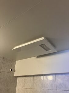 F様邸の換気扇は、キッチンに設置されていました。キッチンは家の中でも特に換気が重要な場所であり、料理による煙や匂いを効率よく排出するために、適切な換気扇の設置が求められます。交換前の換気扇の型番は「V-7547KM5-HTB」でした。この型番の換気扇は、長年にわたりF様のキッチンで活躍していましたが、ついに動かなくなったため交換することになりました。