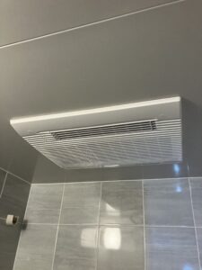 今回の工事で取り替えた換気扇は、浴室に設置されているものでした。浴室の換気扇は湿気を取り除き、カビの発生を防ぐために非常に重要な役割を果たします。特に3室用の浴室暖房乾燥機は、広い範囲をカバーするために必要不可欠です。K様邸でも、浴室の快適さを保つためにこの換気扇が大変重要な役割を果たしていました。