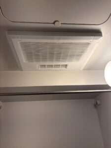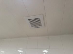 今回の工事で設置した換気扇は、浴室に設置されているものです。浴室は湿気がこもりやすく、換気が不十分だとカビの発生や不快な臭いの原因となります。そのため、浴室用の換気扇は非常に重要な役割を果たしています。