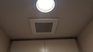 K様邸の換気扇は、キッチンの中心に位置しており、料理の煙や匂いを効率的に排出するための重要な役割を担っています。キッチンは家族が集まる場所であり、清潔で快適な空間を保つためにも、換気扇の性能は不可欠です。