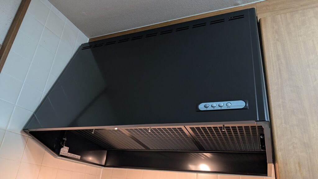 今回の施工は、千葉県千葉市にあるI様邸のキッチンで行いました。既存のプロペラ式レンジフードは型番が不明でしたが、長い間使用されていたため、とうとう動かなくなってしまいました。