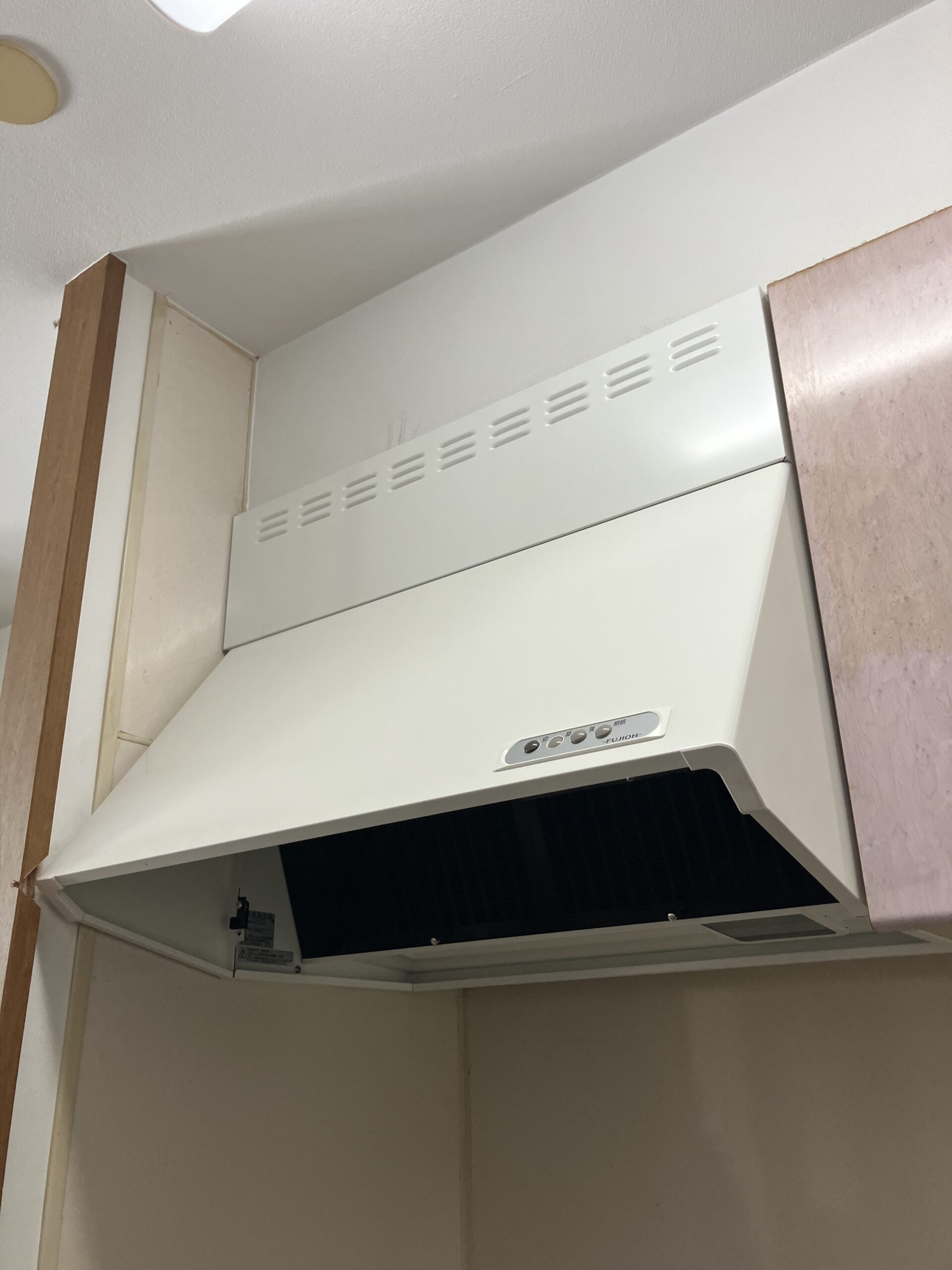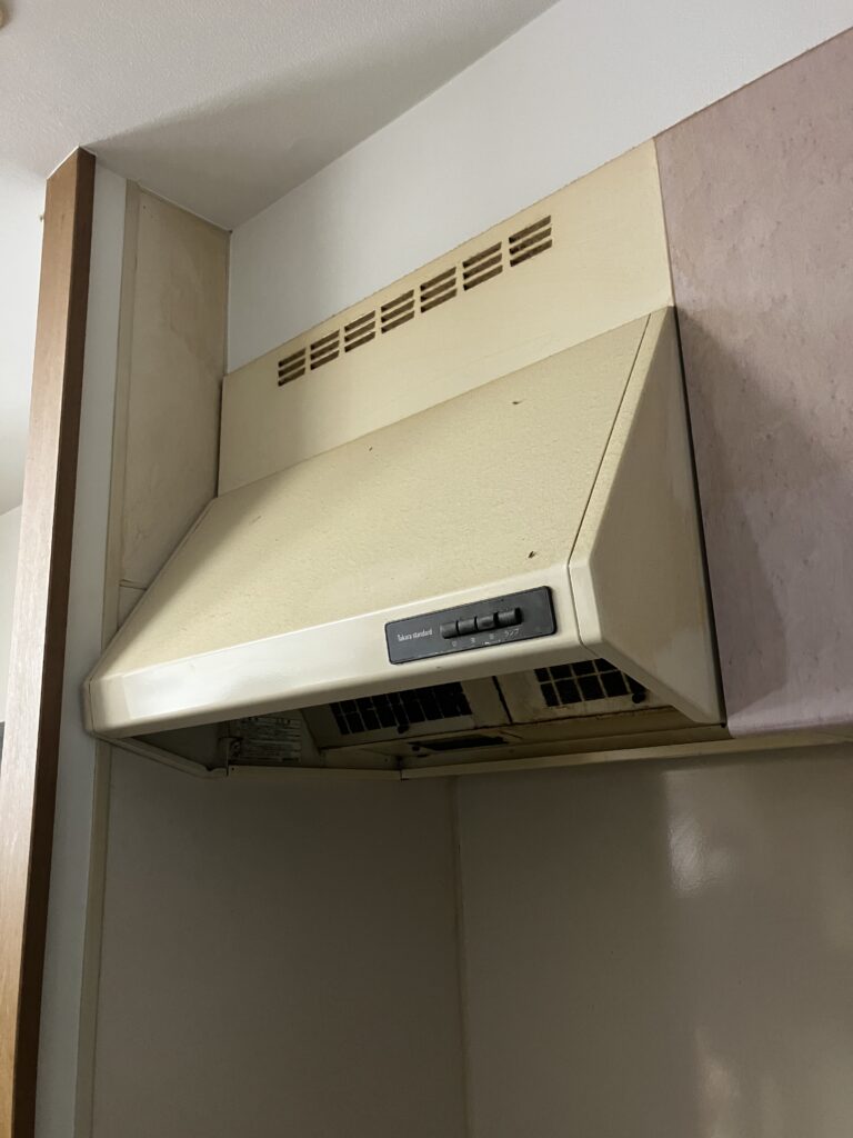 N様のお宅では、キッチンに深型レンジフードが設置されていましたが、残念ながら型番は不明でした。これまで長い間使用されていたため、どんな風に働いていたのかを思い出すのも難しい時期だったようです。