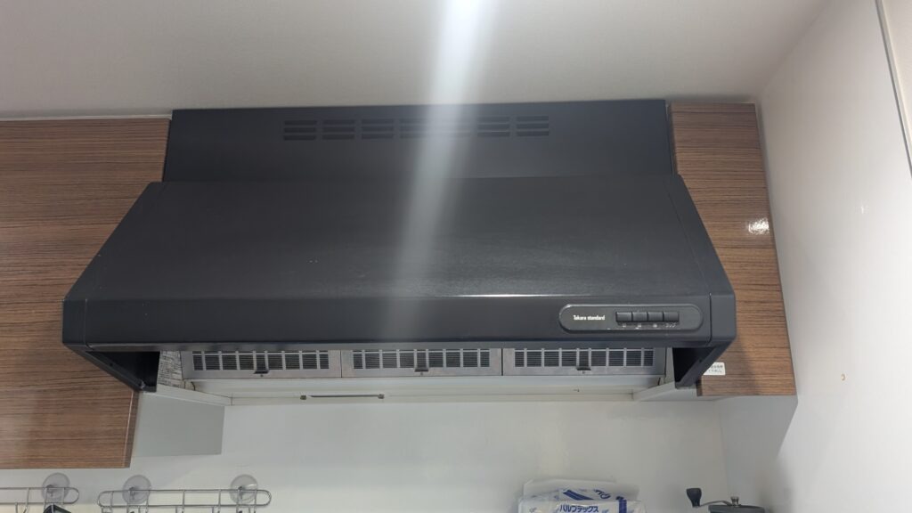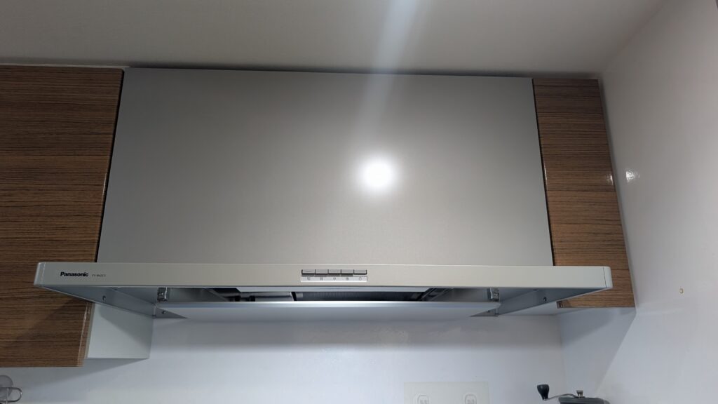 K様のお宅には、キッチンに設置された既存のフラット型レンジフードがありました。その型番は不明でしたが、長い間使用されていたことが分かりました。年数が経過していることで、性能が落ちているのは明らかでした。特に、換気の効率が悪くなってきた印象を受けました。