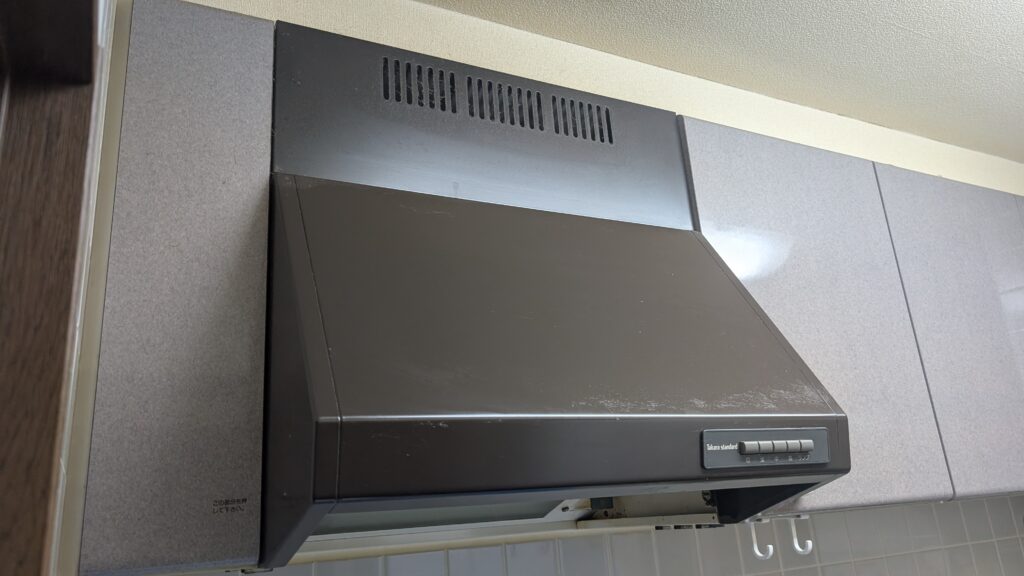 ご依頼いただいたのは、S様のキッチンに設置されていた深型レンジフードです。キッチンは毎日使う場所なので、換気扇もとても重要ですよね。既存の換気扇は年数が経っており、最近は調子が悪くなっているとのことでした。