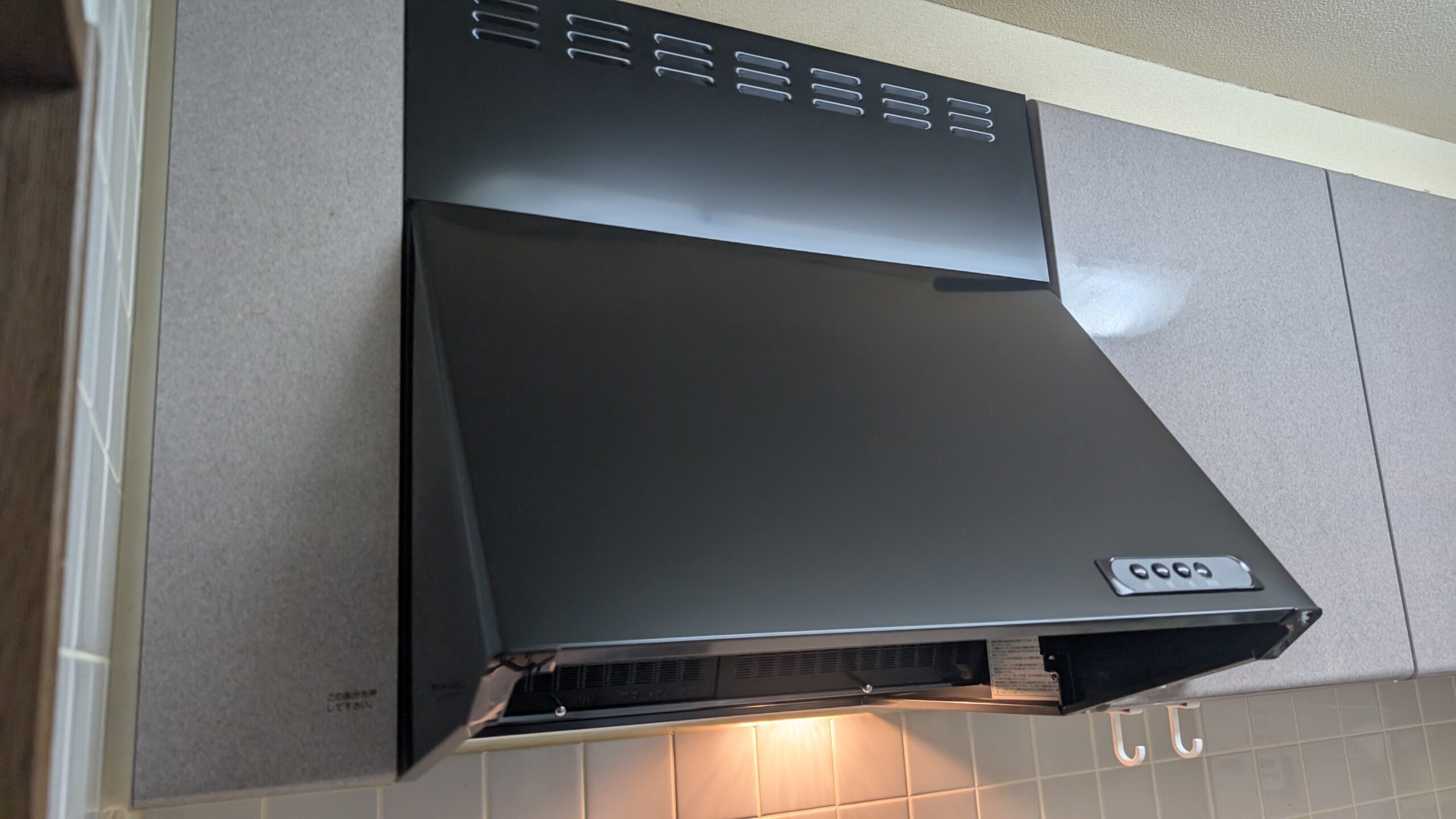 今回は、私たちがおすすめする深型レンジフード ZRS60NBC20FKZ-E に交換しました。デザインもモダンで、機能的にも優れているので、S様にもとても喜んでいただけました。新しい換気扇は、しっかりとした吸引力があり、キッチンの空気を綺麗に保つお手伝いをしてくれます。