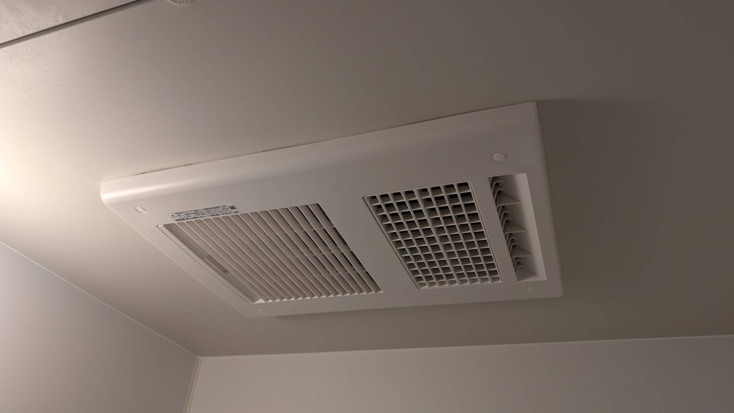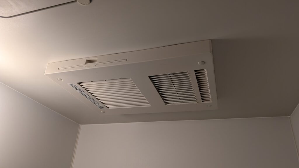 今回交換を行った換気扇は、浴室に設置されていました。浴室暖房乾燥機は、洗濯物を干す際や入浴時に湿気を取るために欠かせないアイテムですね。