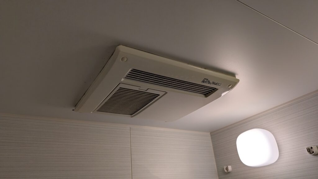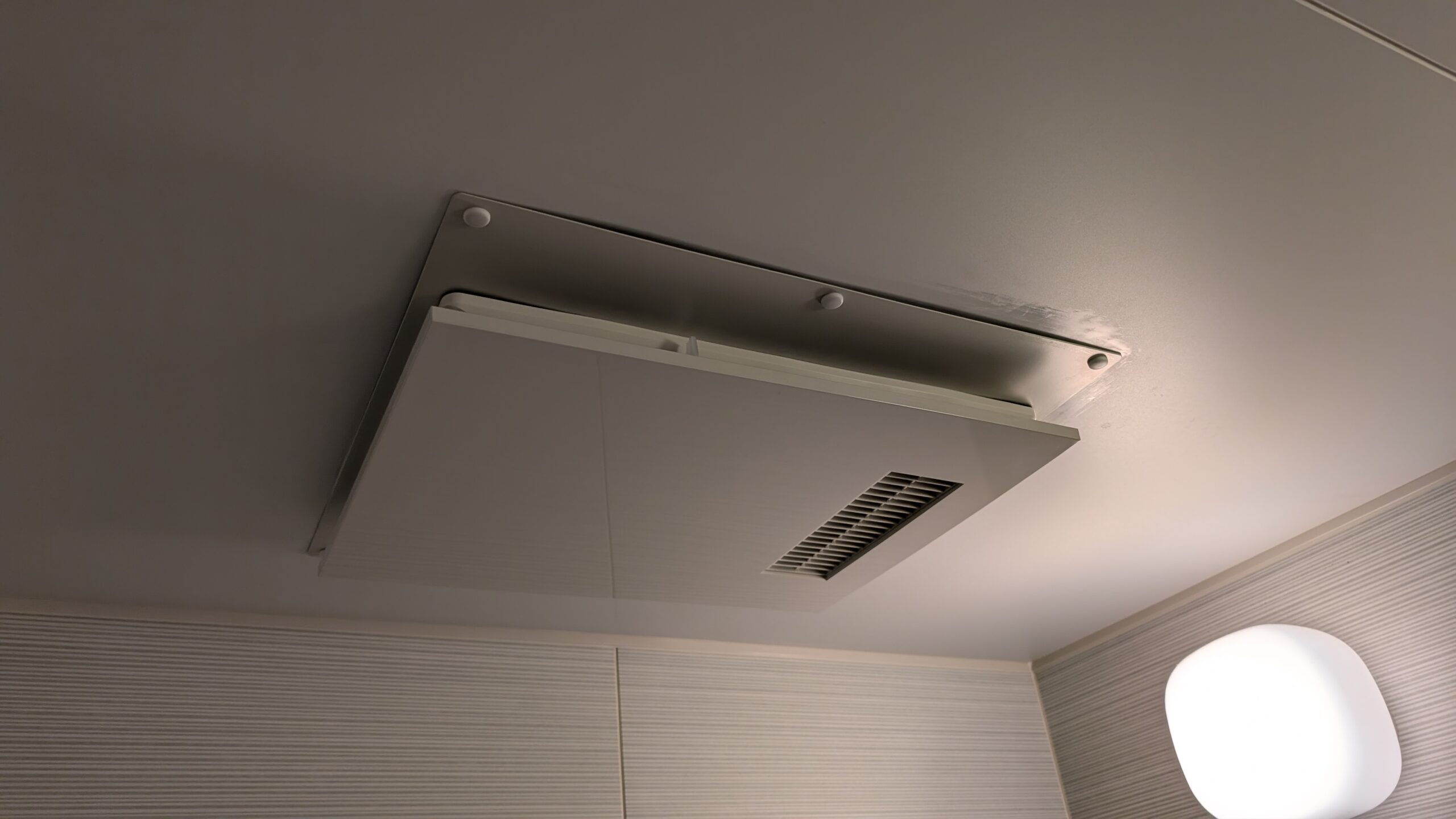K様邸の浴室に設置されていたのは、3室用の浴室暖房乾燥機でした。この換気扇は、浴室から脱衣所、トイレと、3つの部屋への換気を一手に担当している大事な設備です。