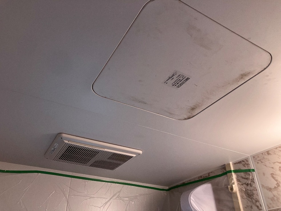 A様のお宅の浴室には、旧モデルの浴室暖房乾燥機「EYK-303J」が設置されていました。浴室における換気の役割を果たす重要な設備ですので、通気性はとても大切です。