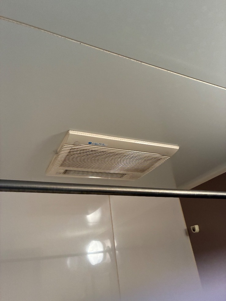 今回、交換を行ったのは、浴室に設置されている暖房乾燥機です。残念ながら、型番は不明ですが、長年使用されており、最近では異音が聞こえるようになってしまったとのこと。やはり、異音がする場合は早めの交換が必要です。
