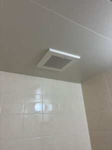 まず、今回の工事で換気扇を設置した場所は浴室です。浴室は湿気がこもりやすく、カビや悪臭の原因となるため、換気扇の役割は非常に重要です。M様邸の浴室も例外ではなく、適切な換気が求められていました。特に、湿気が多い季節には換気扇の性能が大きく影響します。新しい換気扇を設置することで、浴室の環境が大幅に改善されることが期待されました。