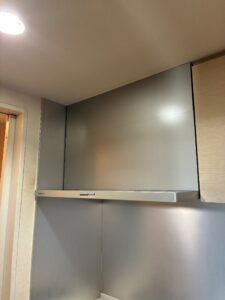 戸棚の高さに合わせて新規レンジフードを設置していき、今回の工事は2時間半ほどで終了いたしました。