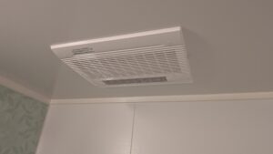 K様のお宅には、以前使用されていた浴室暖房乾燥機「V-100BZ4」が設置されていました。この換気扇は、浴室の湿気やカビを防ぐために重要な役割を果たしている設備です。