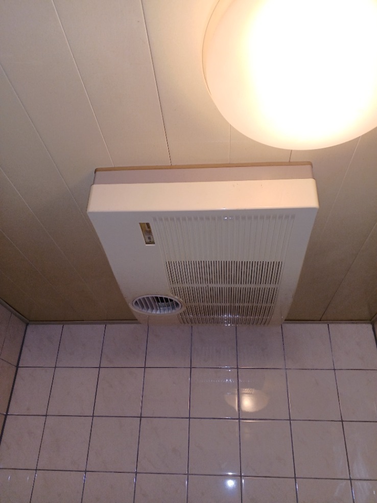 Y様のお宅の浴室には、以前から使っていた浴室暖房乾燥機が設置されていました。型番は不明でしたが、これまで多くのご家庭で見られる一般的なモデルでした。設置場所はもちろん、浴室内でしたので、湿気対策に重要な役割を果たしていました。