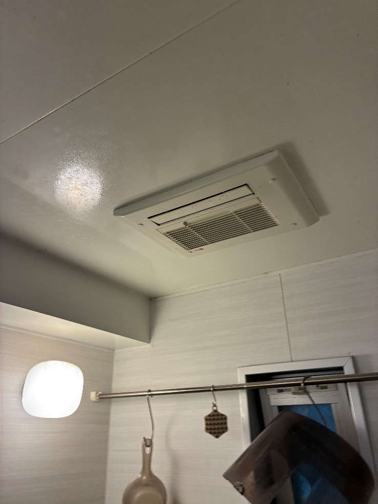 N様の浴室には、以前に「PBD-C33PTC3J」という型番の温水式浴室暖房乾燥機が設置されていました。浴室内の空気循環や湿気の管理は、快適な入浴環境を作る上でとても重要です。