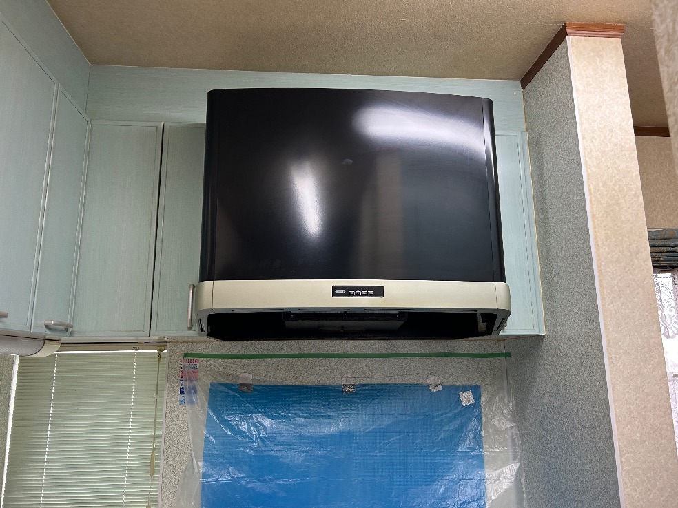 今回はN様のお宅のキッチンにあるスリム型レンジフードの交換工事を行いました。既存の換気扇は「RH-90FMV」というモデルで、この長年使われてきたものが問題を抱えていました。