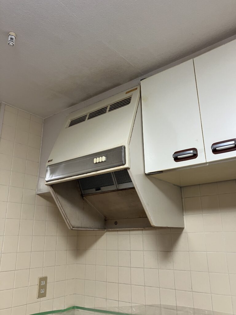 古くなったレンジフードは、モーターや部品の劣化が進んでいるため、吸引力が弱くなることがよくあります。N様の場合も、長年の使用でほとんど機能していない状態になっていました。せっかくの料理も、煙や匂いがこもってしまうと、ストレスになるものですから、早めの交換が必要です。