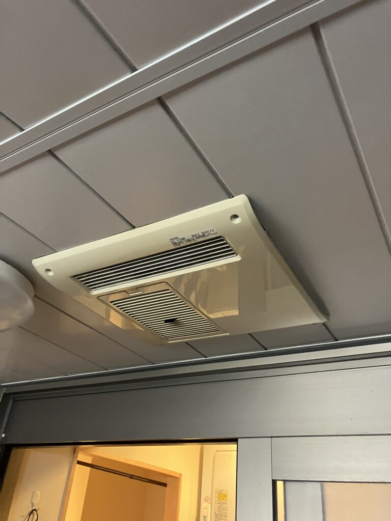 今回の作業は、S様のお宅の浴室で行いました。設置されていた既存の浴室暖房乾燥機は、長い間ご使用されており、動作が不安定になっていました。浴室は湿気が多く、しっかりとした換気が求められるため、早めの対応が必要な状態でした。