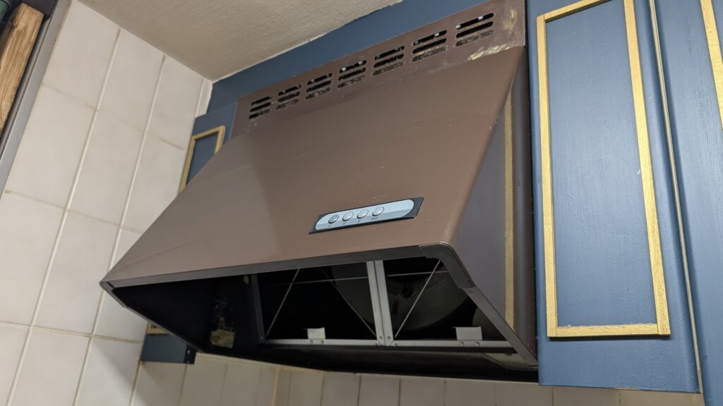 K様からのご依頼は、レンジフードから異音がするとのことでした。異音はモーターの劣化や故障のサインであることが多く、早めの対策が必要です。放置するとさらなる故障につながることもあり、そのためすぐに交換の手続を行うことになりました。