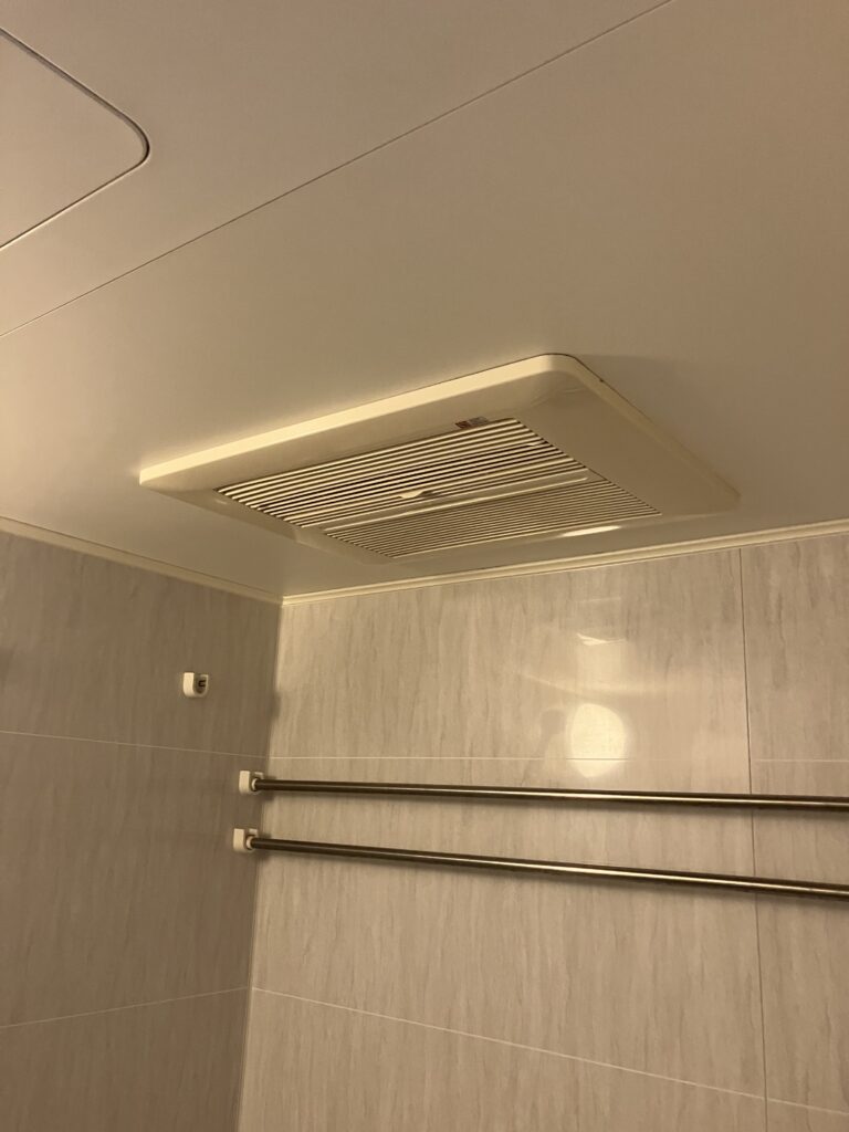 今回は浴室に設置されている中間ダクトファンを撤去し、3室用の温水浴室暖房乾燥機に取り替える工事を行いました。浴室は湿気が溜まりやすいため、新しい設備が求められます。