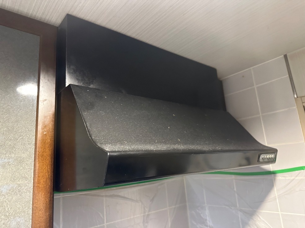 今回の工事は、キッチンに設置されているスリム型レンジフードの交換です。
