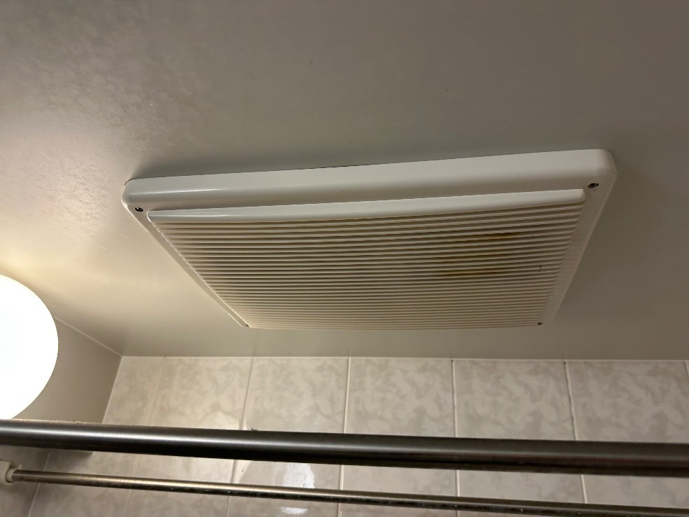 O様邸の浴室に設置されていた換気扇の型番は不明でしたが、年数が経っている様子で、最近は異音がするようになっていました。お客様は、この異音を気にされていました。