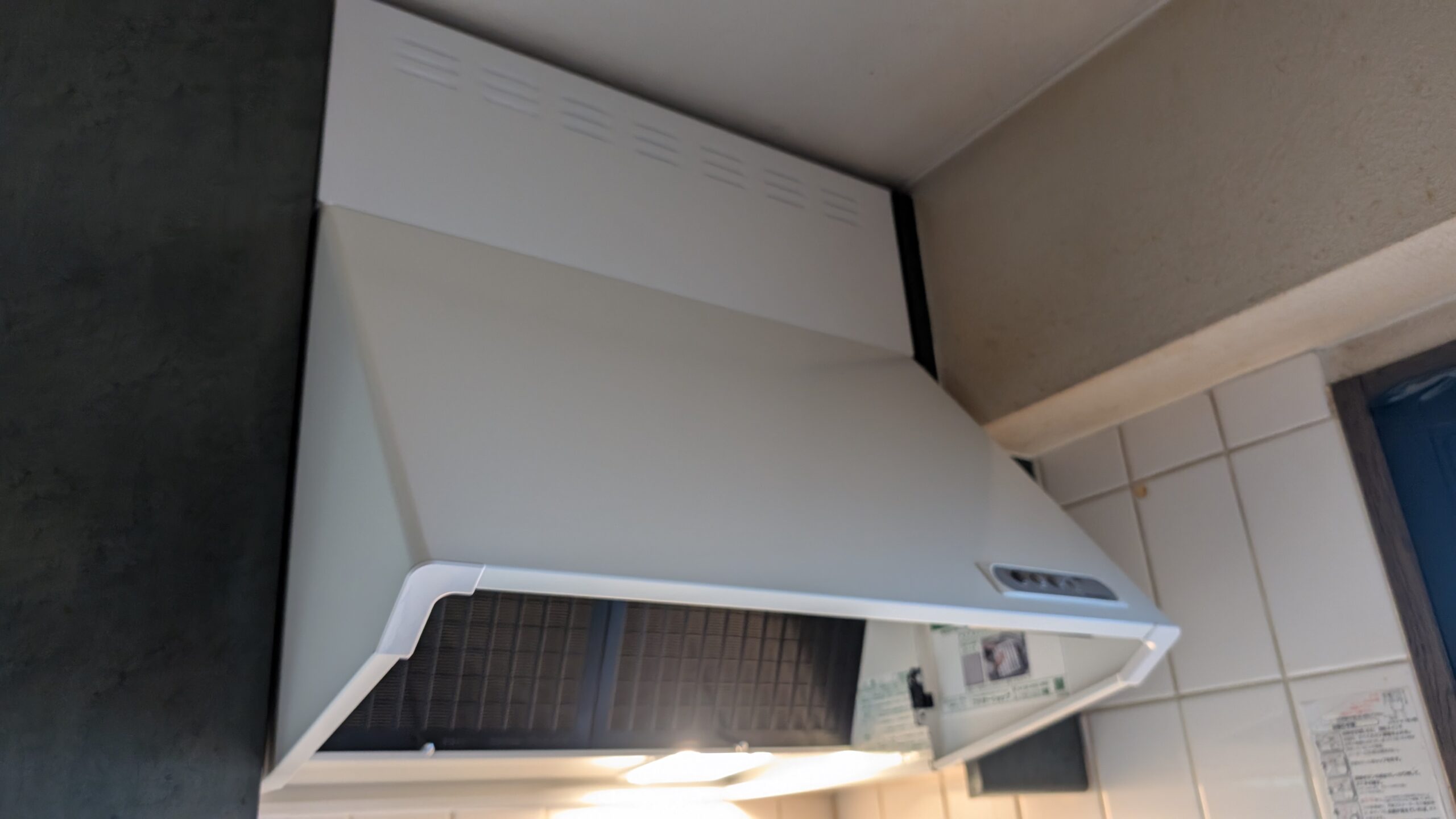 今回は、K様のお宅のキッチンに設置されている深型レンジフードの交換工事を行いました。今回のレンジフードの型式は不明ですが、長年使用されており、確かに交換が必要な状況でした。