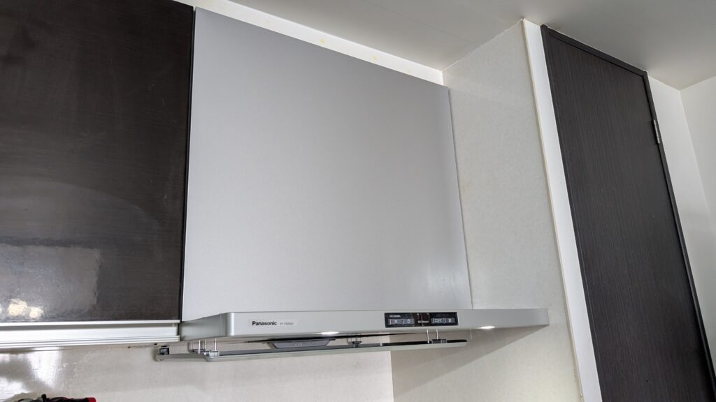 新しく設置するレンジフードは「FY-75DED3-S」という型番のフラット型です。このモデルは洗練されたデザインが特徴で、キッチンの美観を損なうことなく、高性能な換気を実現します。特に、吸引力が強く、料理中も快適に過ごすことができると評判です。