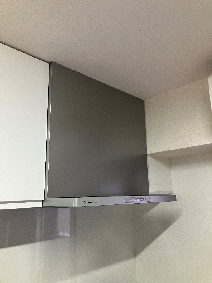 新しく取り付けた換気扇は「FY-7HGC5-S」です。このモデルは静音性が高く、油煙や臭いをしっかりと排出する性能が優れていますので、K様にはより快適なキッチンをご提供できるでしょう。