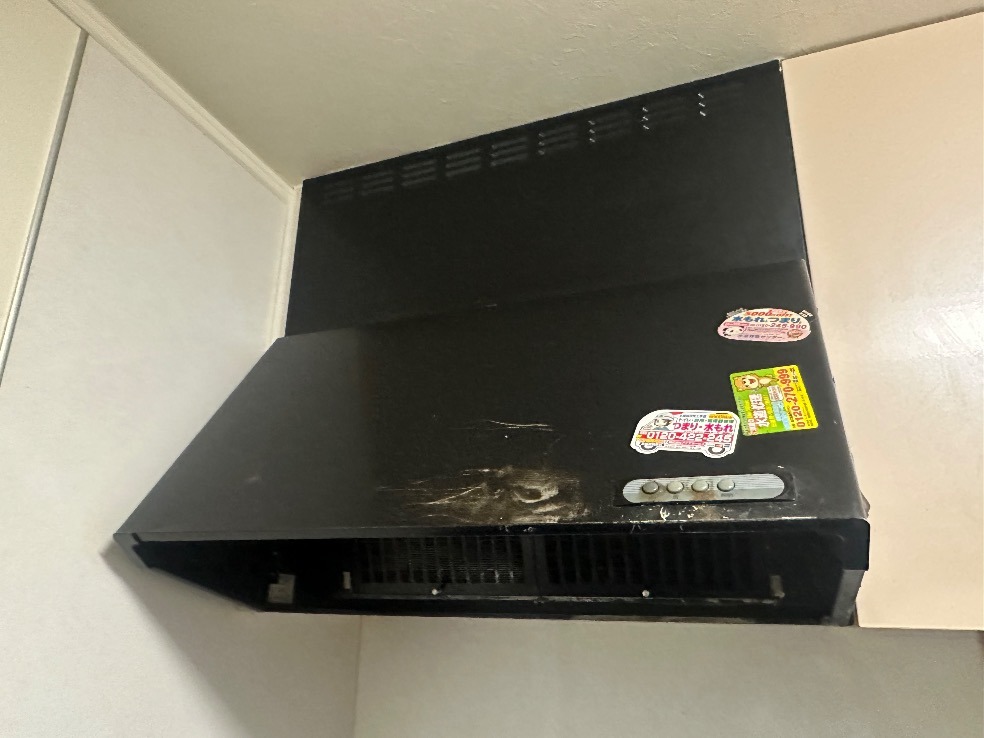 T様邸の換気扇はキッチンに設置されていました。元々の換気扇は型番が不明でしたが、年数が経過し、使用に伴う劣化が見られました。