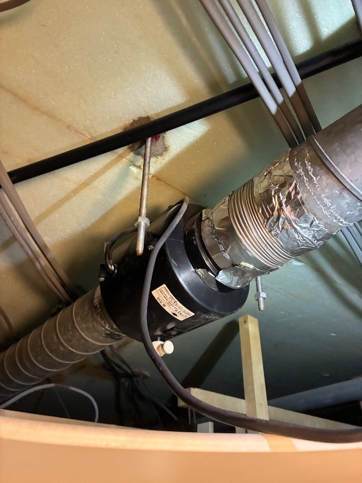M様のお宅の中間ダクトファンは、天井裏に設置されていました。このダクトファンはトイレや浴室の換気をスムーズに行うための重要な設備であり、快適な住環境には欠かせません。