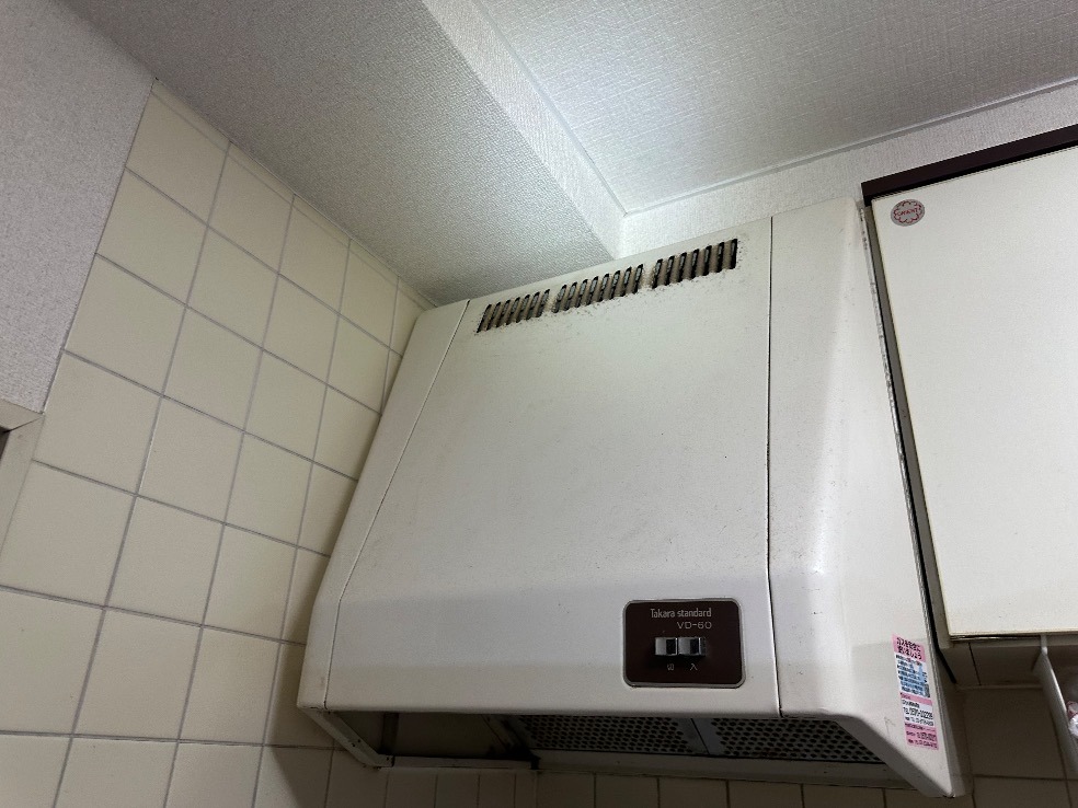 O様のお宅では、キッチンに設置されていた換気扇がありましたが、その型番は不明でした。長年使用されていたようで、見た目からも経年劣化が感じられる状況でした。