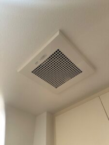 Y様のお宅の浴室には、古いタイプの浴室換気扇が設置されていました。こちらも、写真で見ると一目でわかるような旧式の換気扇です。