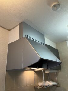 I様邸で交換された換気扇はキッチンに設置されています。キッチンは家庭内で最も換気が必要とされる場所の一つであり、調理による油煙やにおい、湿気などを効果的に排出するためには、性能の良い換気扇が求められます。フラット型レンジフードは、見た目がスッキリしているだけでなく、掃除のしやすさや機能性にも優れているため、多くのご家庭で選ばれています。