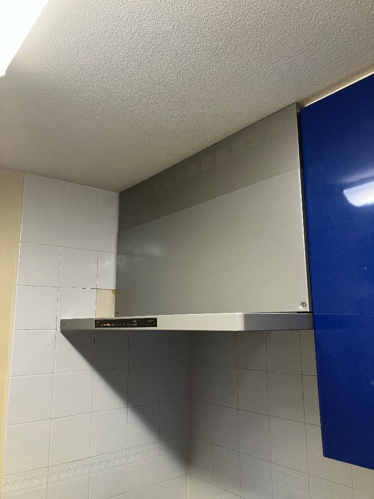 今回の工事は、キッチンに設置されるレンジフードの交換です。