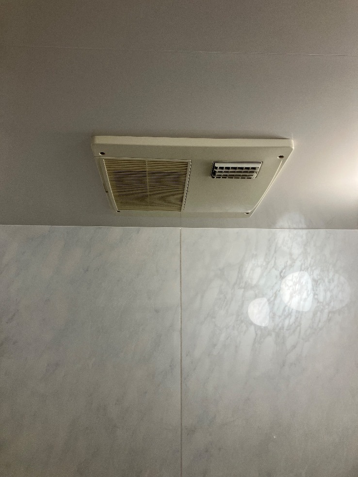 今回は神奈川県川崎市川崎区にあるK様のお宅にて、3室用浴室暖房乾燥機の取替工事を行いました。既存の換気扇は型番V-103BZLで、浴室に設置されていました。