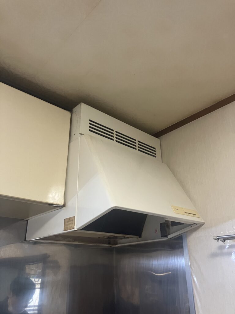 今回は神奈川県座間市にあるH様邸にて、キッチンに設置されているフラット型レンジフードの取替工事を行いました。既存の換気扇は古くなり、故障してしまったための交換となります。