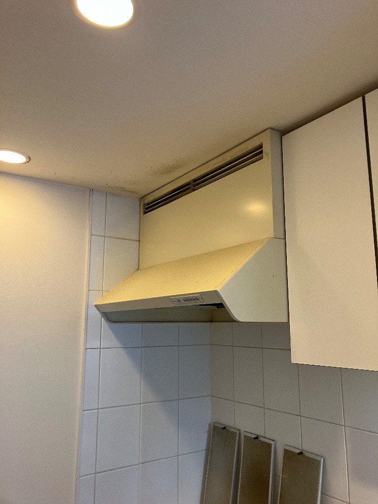 E様のお宅のキッチンには、長年使用されてきた古いブーツ型レンジフードが設置されていました。このレンジフードは、料理時の煙や臭いを外に出す大切な役目を果たしていましたが、年数が経つにつれてその能力が落ちてきていたため、交換を決意されたとのことです。