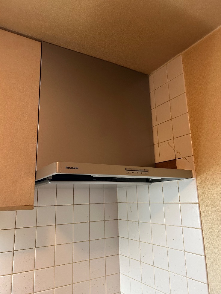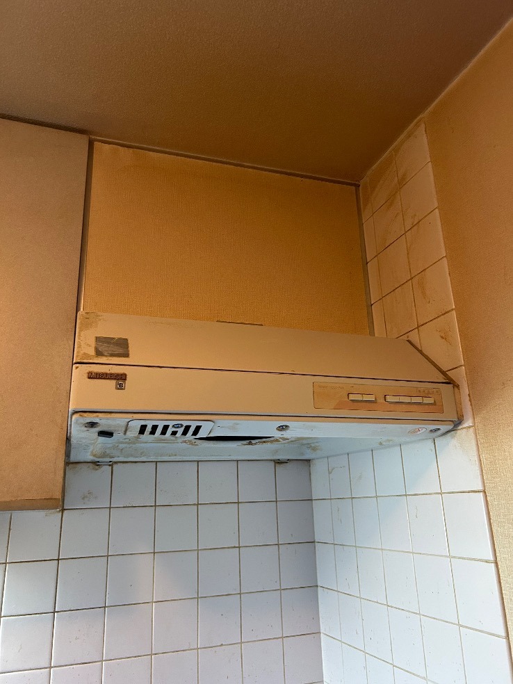 今回の工事は、神奈川県横浜市にお住まいのS様邸で行われました。設置されている場所はキッチンです。こちらには以前からフラット型のレンジフードが取り付けられていましたが、型番は不明でした。