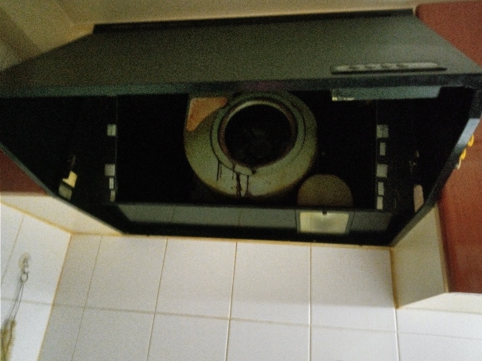 今回の工事は、神奈川県横浜市にお住まいのT様のお家で行いました。設置されていた既存の換気扇は、キッチンにあるフラット型レンジフードでした。年数が経っており、普段の使用による劣化が見受けられました。