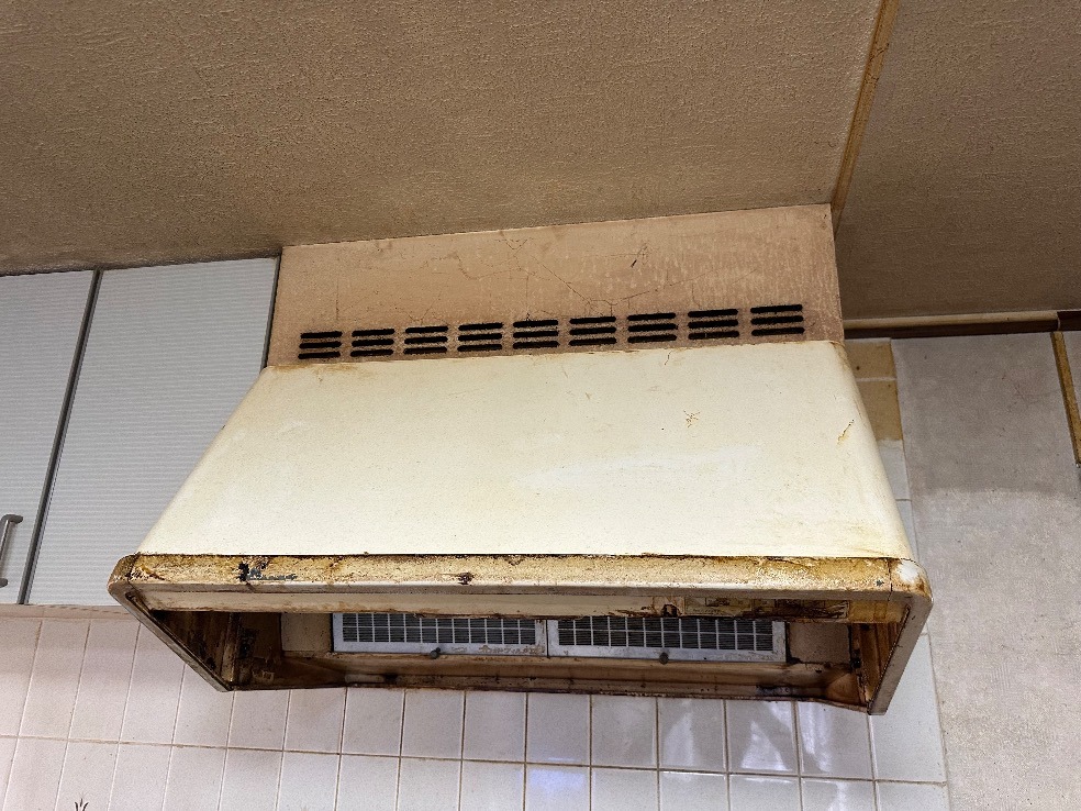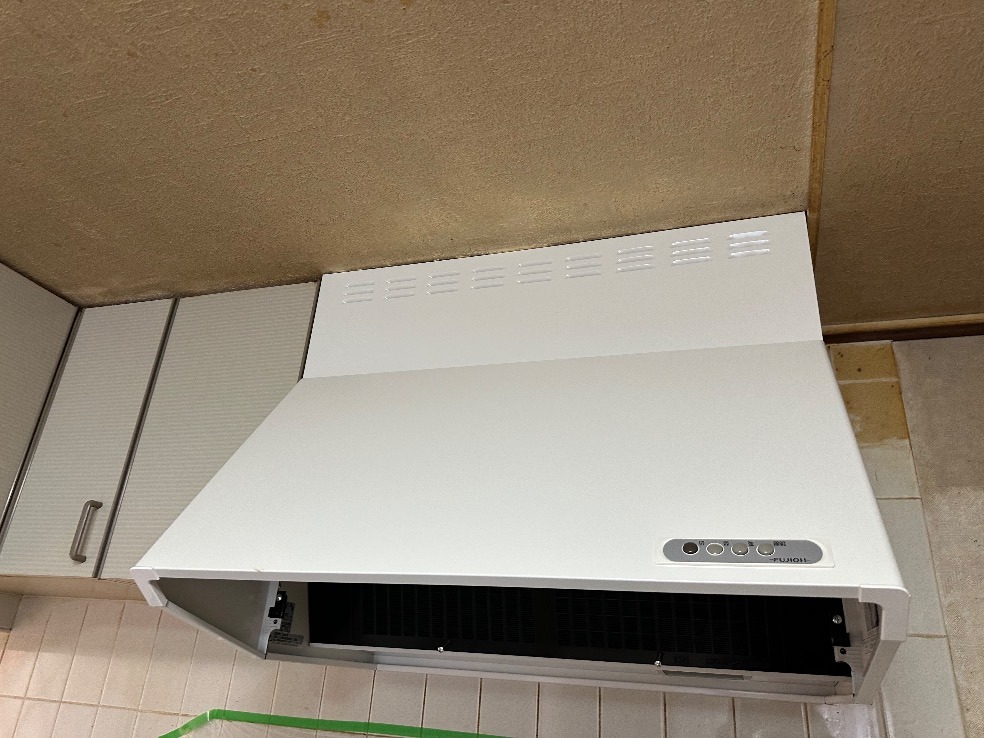 キッチンは毎日の料理や家族の集まる場所ですので、換気は特に重要です。T様のレンジフードが劣化してきたため、より安心して使えるモデルに交換したいとのご希望がありました。