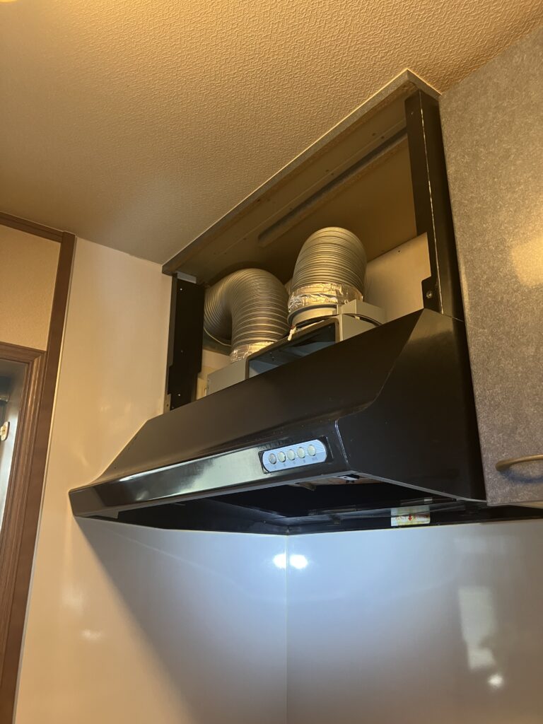 Y様のご自宅のキッチンに設置されていたのは、スリム型のレンジフードです。キッチンは毎日の料理をする重要なスペース。換気扇がしっかり機能していないと、煮物や焼き物をしているときに煙やにおいがこもってしまいますので、スムーズな換気は欠かせません。