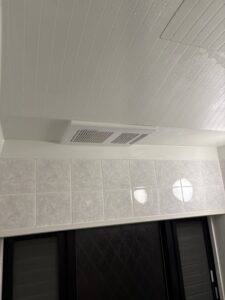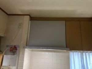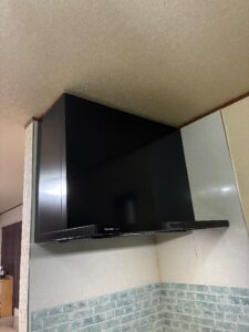 上記の写真のように既存のレンジフードを取り外すことで電線を引き込む作業が大変楽になります。