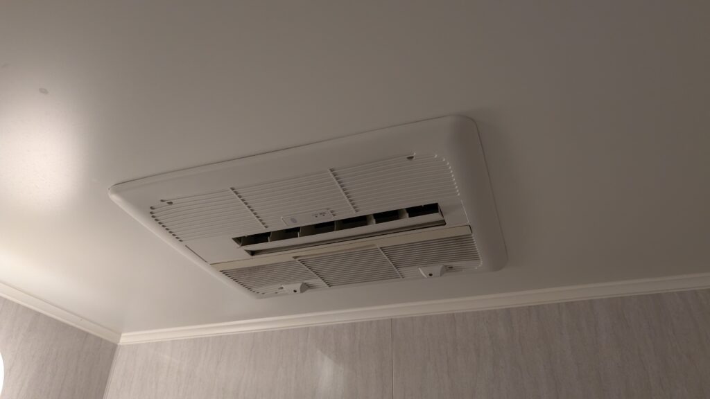 こちらのO様邸に設置されていたのは、20年程前に取り付けられた温水式浴室暖房乾燥機です。この換気扇は、主に浴室に設置されており、冬場の入浴時に部屋を暖かく保ちながら、湿気を取り除いてくれる重要な役割を担っています。