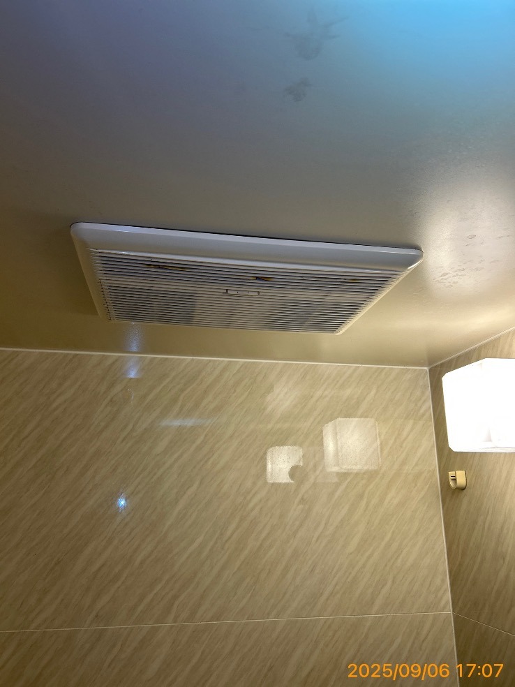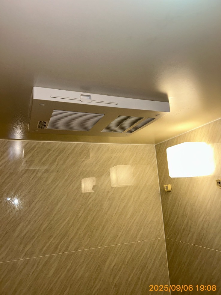 M様のお宅には、浴室に設置されているBS-653という3室用の浴室暖房乾燥機がありました。浴室は常に湿気がこもりやすい場所なので、しっかりと換気を行うことが特に重要です。