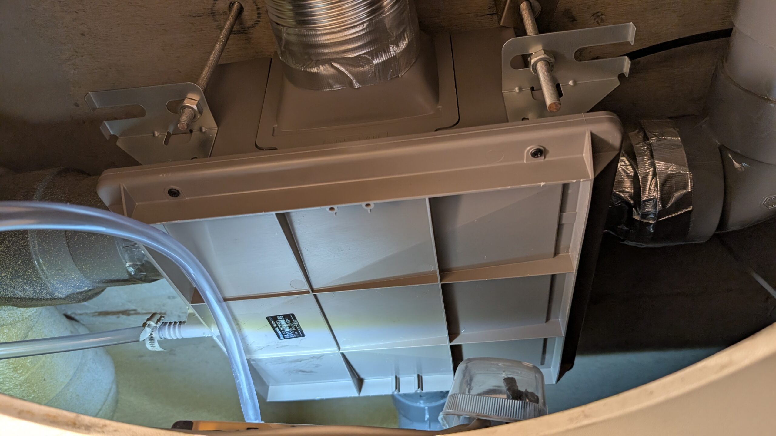 この度の交換事例:Y様のご自宅の浴室に設置されていた中間ダクトファンを交換させていただきました。