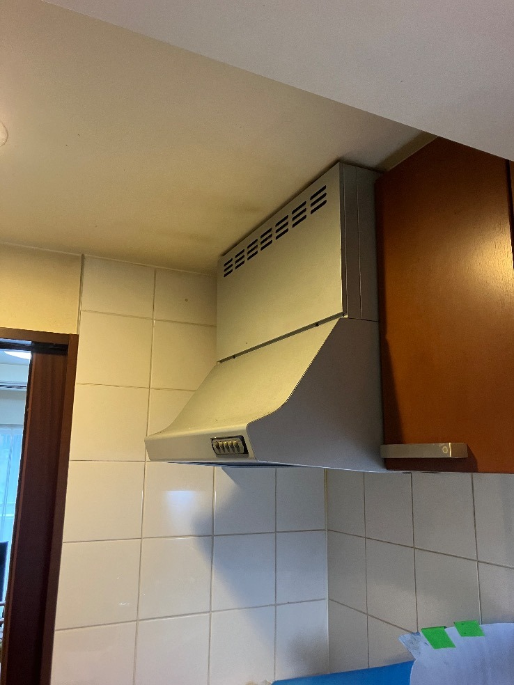 W様のお宅のキッチンには、型番不明の古いレンジフードとガスコンロが設置されていました。年数が経つにつれて、どちらも経年劣化が進み、特にレンジフードは吸引力が低下していました。キッチンは毎日の料理をする大事な空間ですので、安全で快適な環境を整える必要があります。