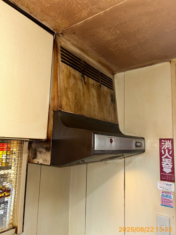 O様のマンションのキッチンには、古くから取り付けられていた深型レンジフードがありました。このレンジフードは築年数が古く、一度も交換されていなかったため、機能や外観が劣化していました。特にキッチンは毎日使う場所であり、換気扇の性能はとても重要なのです。